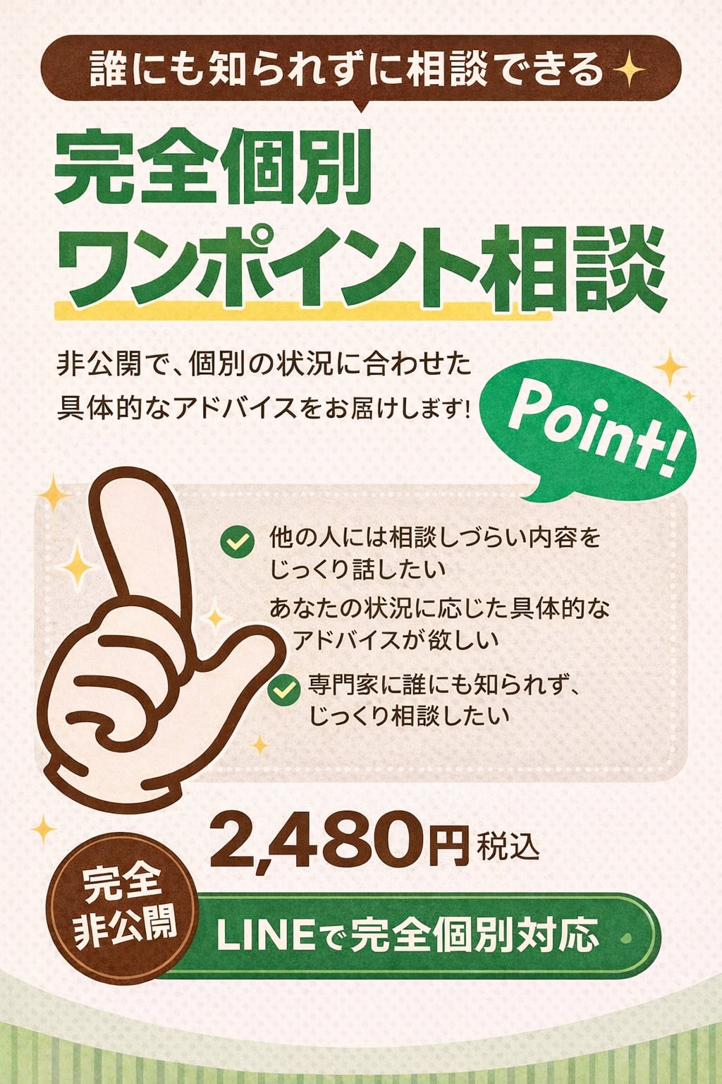そんな方のための、完全非公開のワンポイント相談です。